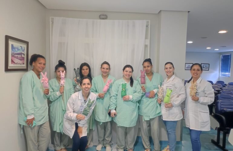 Mães da UTI Neonatal do HRSP confeccionaram enfeite de Páscoa na oficina de artesanato