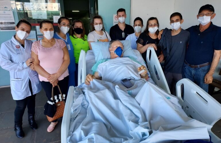 Paciente da UTI do HRSP recebeu a família na porta do hospital