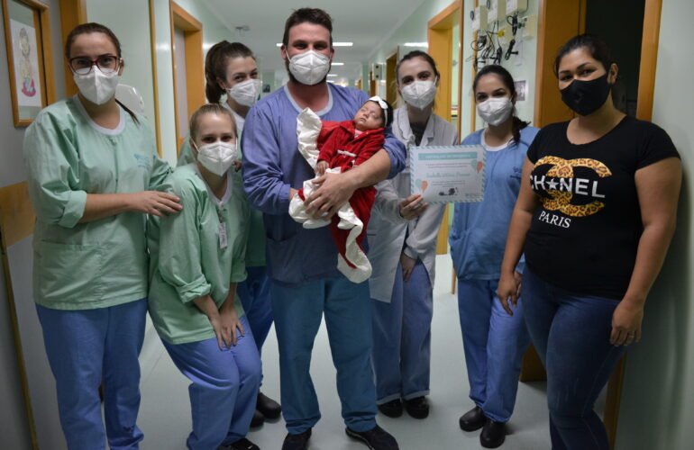 Família de bebê xanxerense retorna ao HRSP para agradecer atendimento na UTI Neonatal